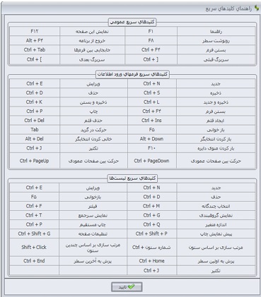 کلیدهای میانبر گزارش‌گیری در سپیدار