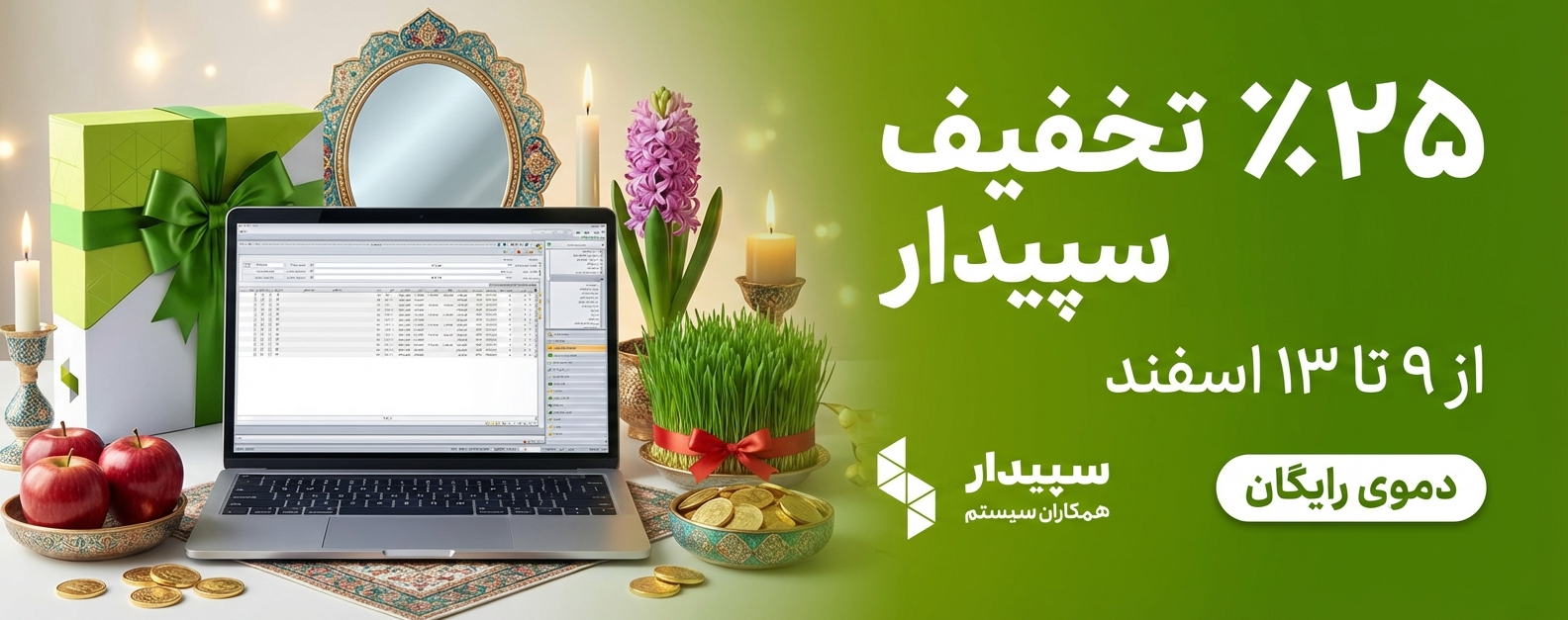 در بازه کوتاه ۹ تا ۱۳ اسفند، تمام نسخههای سپیدار همراه با زیرسیستمها با ۲۵ درصد تخفیف واقعی ارائه میشوند بهترین فرصت برای خرید سپیدار با پایینترین قیمت در سال!