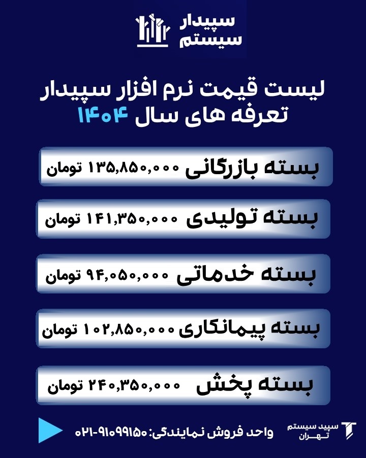 خدمات ارائه شده:نمایندگی در تهران خدمات مختلفی را ارائه میدهد از جمله نصب و راهاندازی نرمافزار، آموزشهای حضوری، و پشتیبانی محلی. این خدمات به کاربران کمک میکند تا به بهترین شکل از محصولات سپیدار سیستم استفاده کنند.